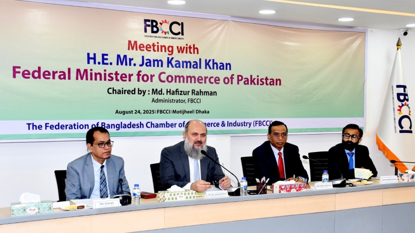 FBCCI held a discussion meeting with the visiting Commerce Minister of Pakistan Mr. Jam Kamal Khan on August 24, 2025 at the FBCCI office in Motijheel, Dhaka. Bangladeshi business leaders were present at the meeting.
