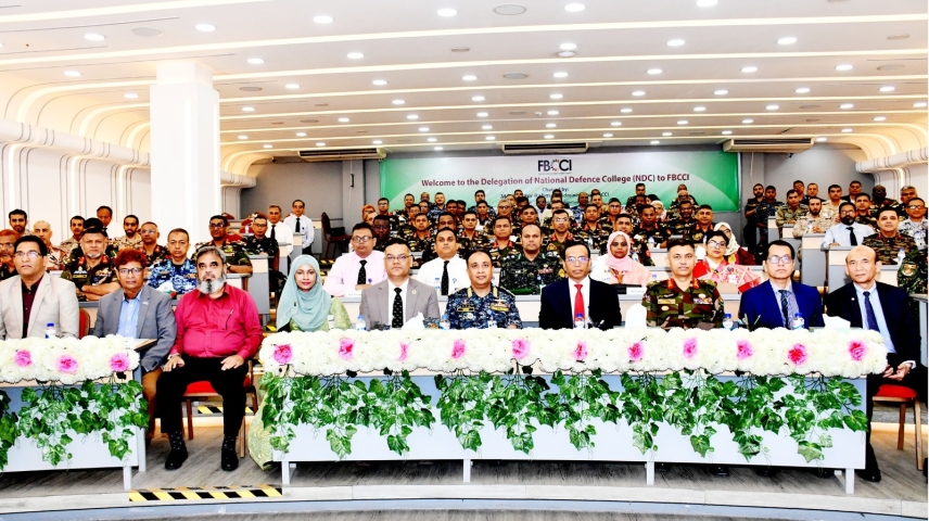 A 110-member delegation from the National Defence College (NDC) Course-2025 visited the Federation of Bangladesh Chambers of Commerce and Industry (FBCCI), the apex trade organization of the country on April 10, 2025. The NDC delegation including participants and faculties visited FBCCI as part of their course.